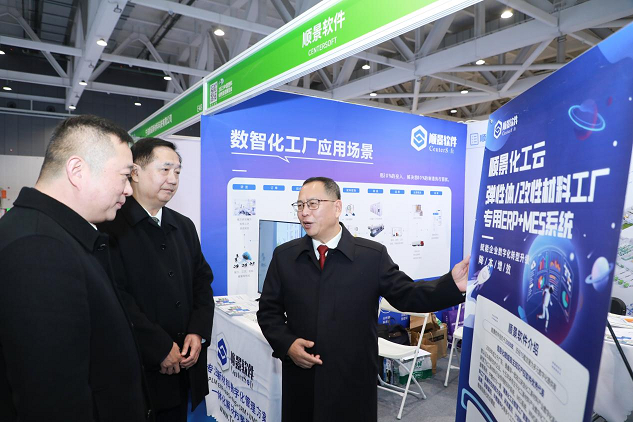 中国塑料加工协会理事长王占杰,副理事长王磊光,工程塑料专委会秘书长赵明佑莅临顺景展位,王占杰理事长勉励期许顺景软件能够为中国塑料行业数字化发展做出更大贡献。他们认为,数字化软件解决方案不仅可以帮助企业实现绿色生产,还可以推动新材料产业的智能化发展,为行业的可持续发展提供强大的技术支持。